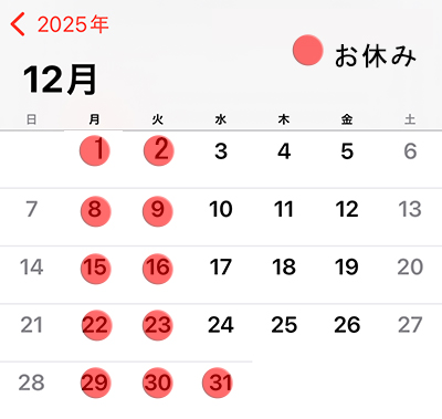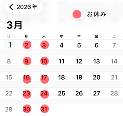 お休みが変更になる場合もございますので